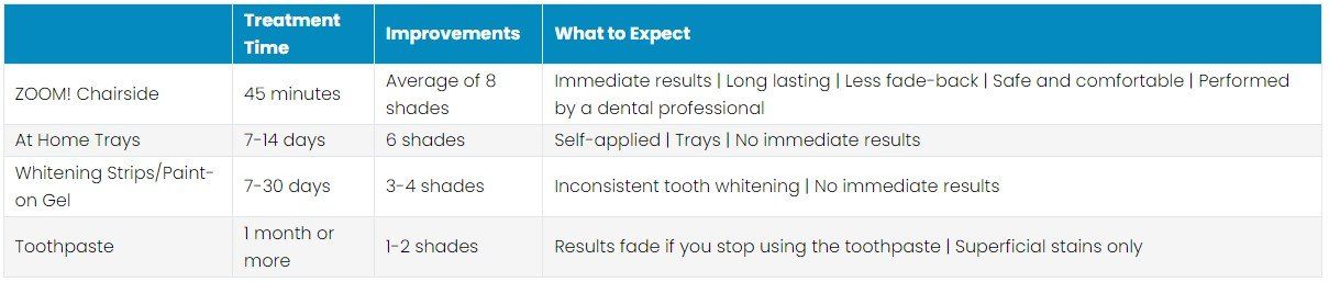 Other whitening systems don't compare to the Zoom! Chairside Whitening System. Nothing whitens better or faster.